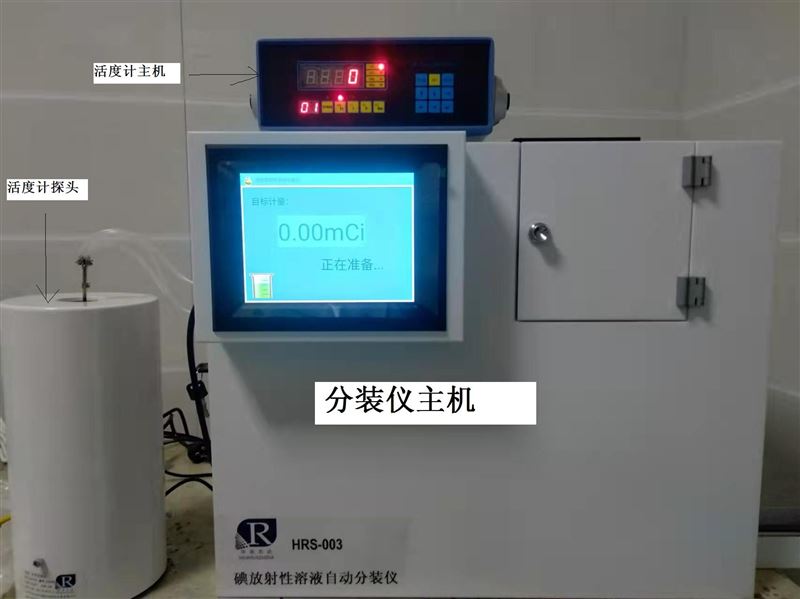 碘自动分装仪具有全自动化,针对传统操作中医务人员必须用手接触源药瓶遭受放射源瞬间巨量辐射的现实,专门重点设计的内置活度计,专门用来实时测量、显示总活度、剩余药物活度;高清视频监测、双向语音交流系统; 选配:外置RM905a/CRC-55TR活度计,实时测量分装到口杯中的碘-131活度, 保证分装的准确性;远程视频、语音能让